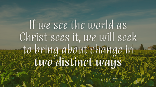 As I mentioned to begin this message, if we see the world as Christ sees it, we will seek to bring about change in two distinct ways. So, what are the two distinct ways in which we should respond to this twofold way that Christ views the world?