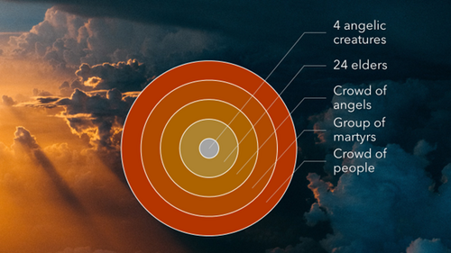 - Now an uncountable multitude of deceased believers worships around the throne.