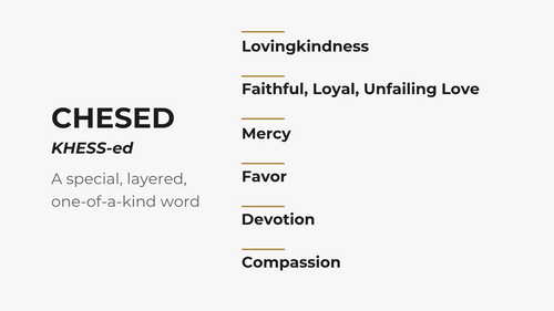 The word chesed is a special, layered, one-of-a-kind word. When the Old Testament (OT) was written, there were no similar or comparable words or concept in other languages, cultures, or religions at that time. It was a unique word and concept which in most of the many times it is used in Scripture attempts to describe our incomparable God.