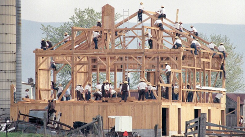 This community-involved home-building approach resembles the Amish tradition of barn-raising, in which dozens of families gather from the community to build an entire barn together in a single day, each person contributing according to their skills and strength. Though the work is physically demanding, it is marked by cooperation, shared meals, and a joyful sense of purpose and participation. This tradition highlights the Amish belief that community support is essential; each family gives generously, confident that others will do the same for them when their time of need comes.
